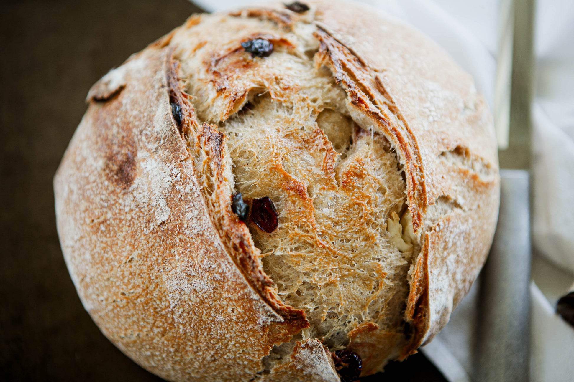 Lightly sweet sourdough with tart cranberries and toasted walnuts for a balanced, hearty loaf.