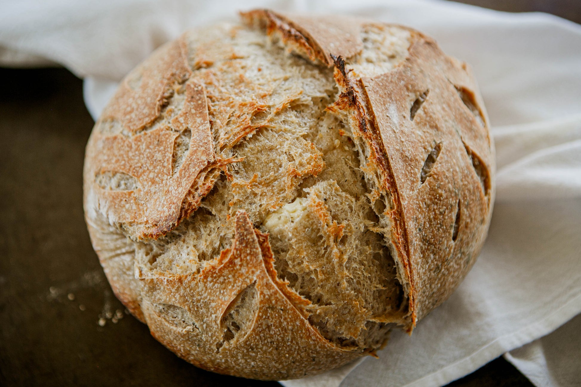Rich, aromatic sourdough with slow-roasted garlic and caramelized onions baked throughout.