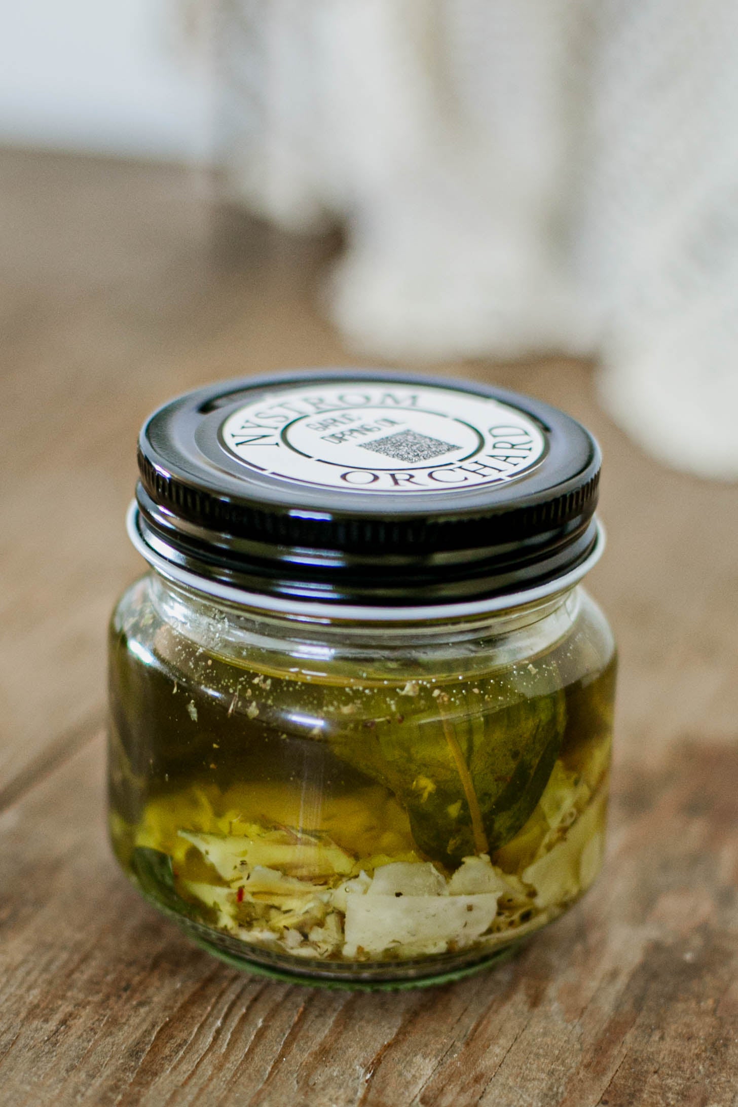 A savory blend of extra virgin olive oil, garlic, herbs, and spices—perfect for dipping fresh sourdough bread or drizzling over roasted vegetables and pasta. Rich, aromatic, and full of flavor. 8 oz jar