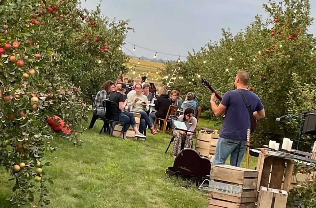 The tasting will last about an hour. Then, feel free to stay and enjoy the orchard and live music afterwards.