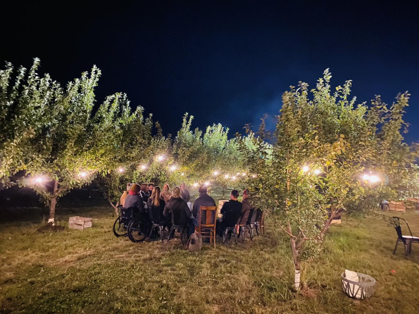 There is seating towards the end of the tasting to enjoy the rest of the evening and dessert. Plan on spending a few hours at the orchard.