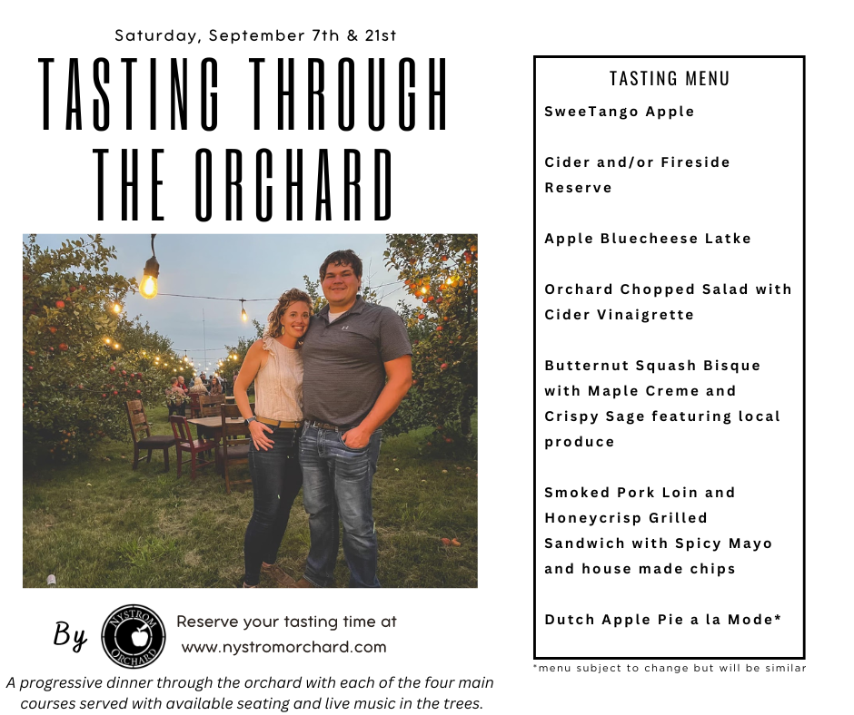 Take a walk through the orchard and enjoy a progressive dinner along the way.